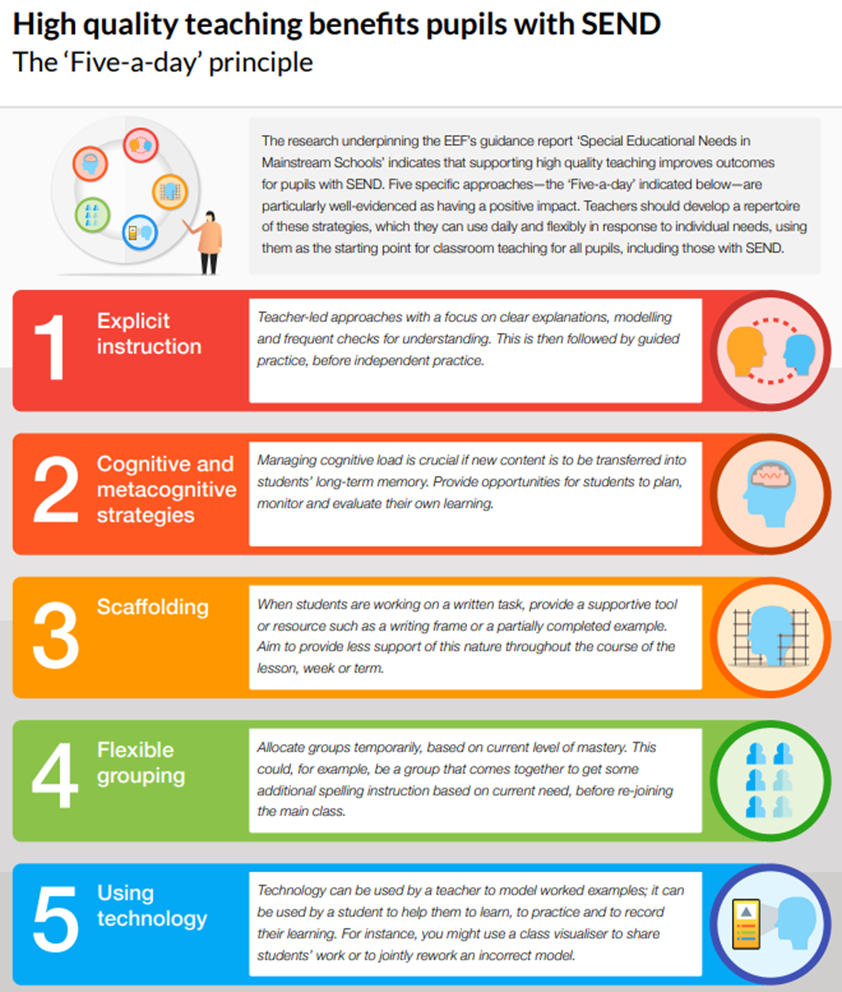 Top down teaching – one lesson purpose for all – appropriately scaffolded – use of ‘I, We, You’ model |