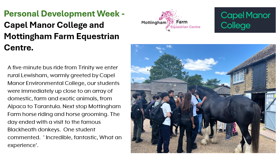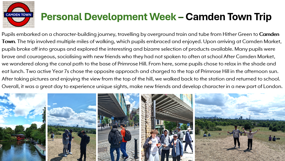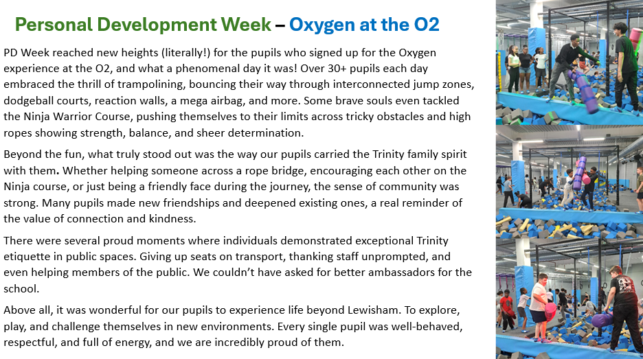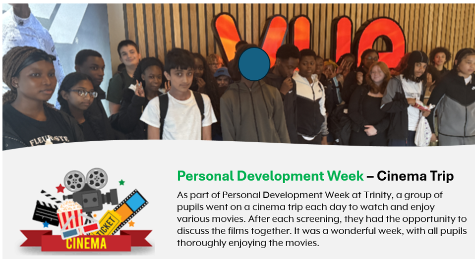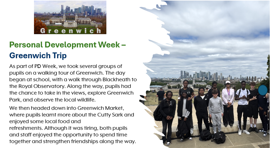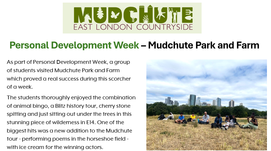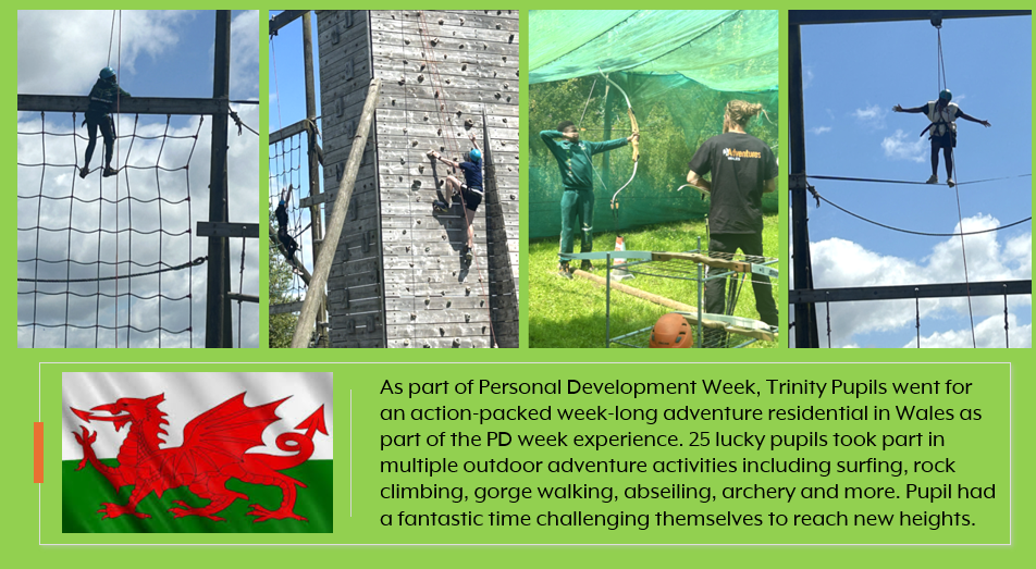 Personal Development Week is a week-long trip extravaganza at the end of the summer term. Pupils have a totally free choice to sign up for any trips they wish to and are mixed into groups combining different year groups. This creates an opportunity for all to meet new friends through new and shared experiences. PD week brings pupils together as a community and fosters a sense of belonging, adventure and discovery. Last year we had over 20 possible trips to choose from.