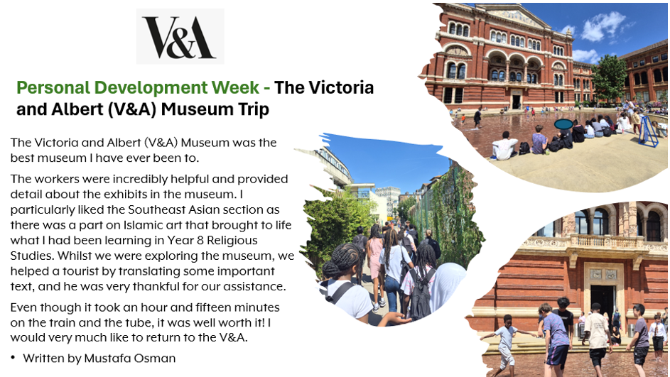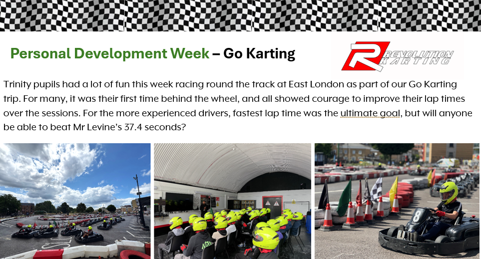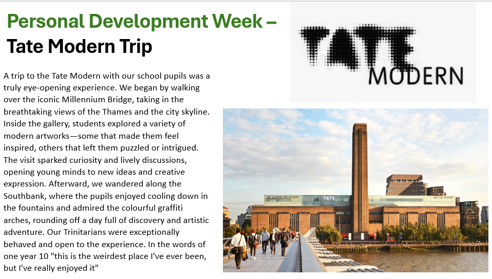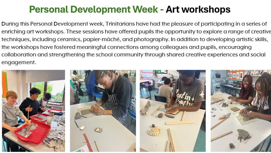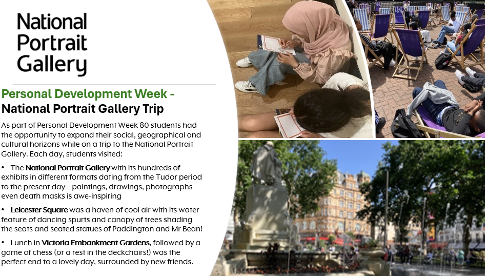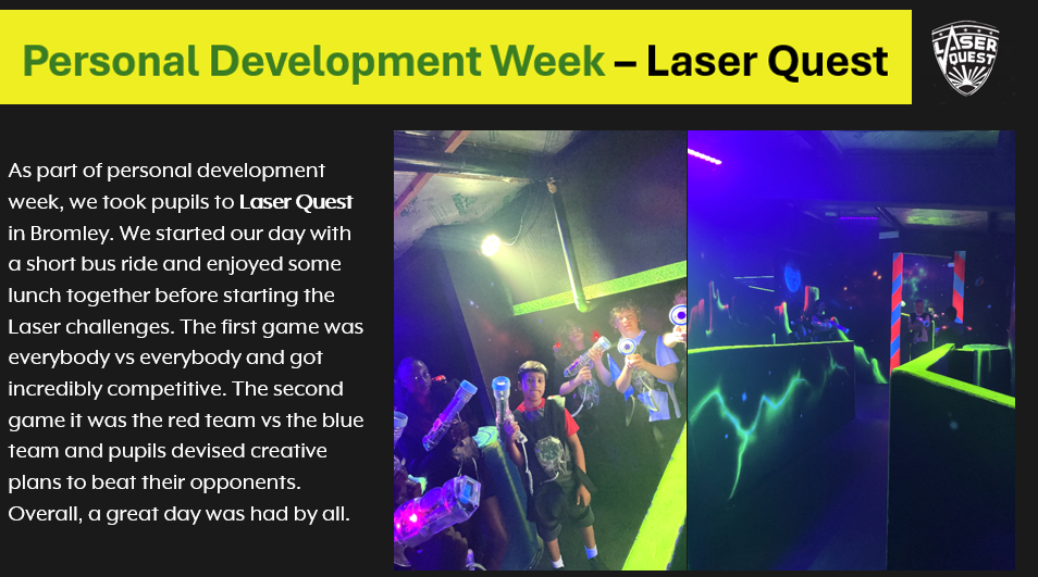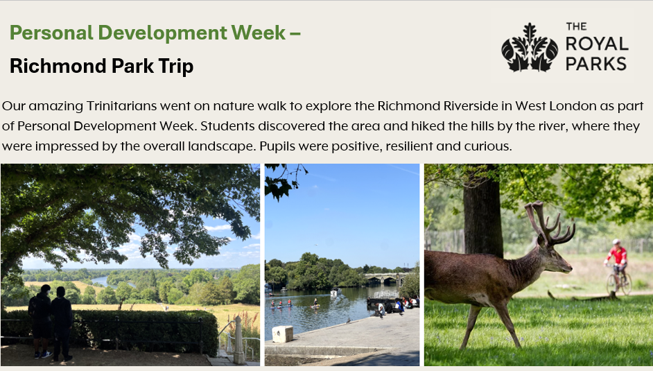 Personal Development Week is a week-long trip extravaganza at the end of the summer term. Pupils have a totally free choice to sign up for any trips they wish to and are mixed into groups combining different year groups. This creates an opportunity for all to meet new friends through new and shared experiences. PD week brings pupils together as a community and fosters a sense of belonging, adventure and discovery. Last year we had over 20 possible trips to choose from.